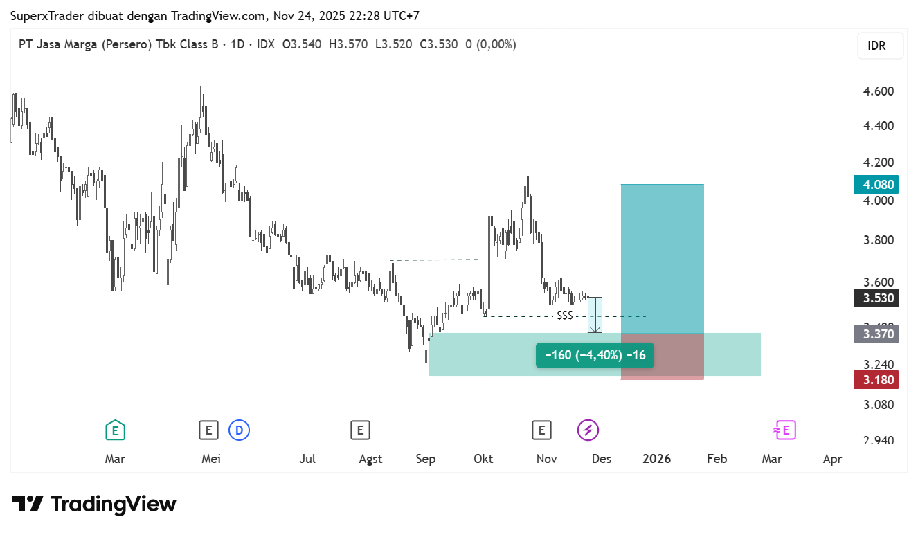 JSMR layak untuk jangka panjang, tetapi belum masuk kategori super murah. Harga diskon ringan, potensi naik masih ada jika trafik tol & pendapatan stabil.