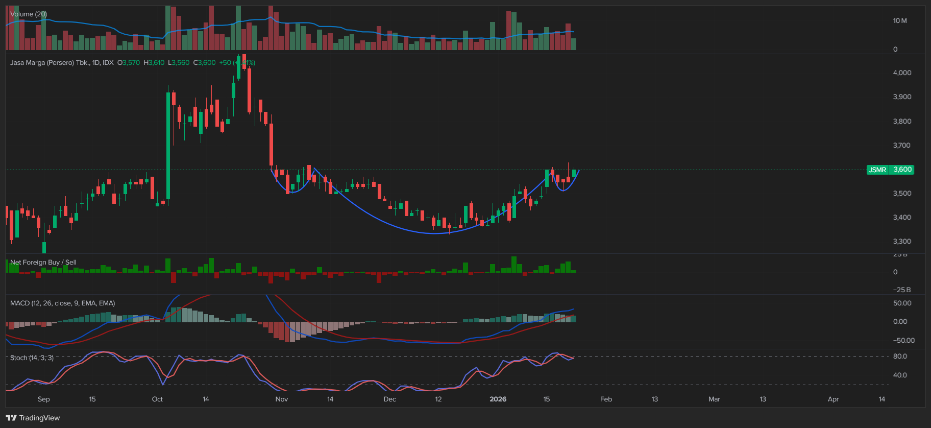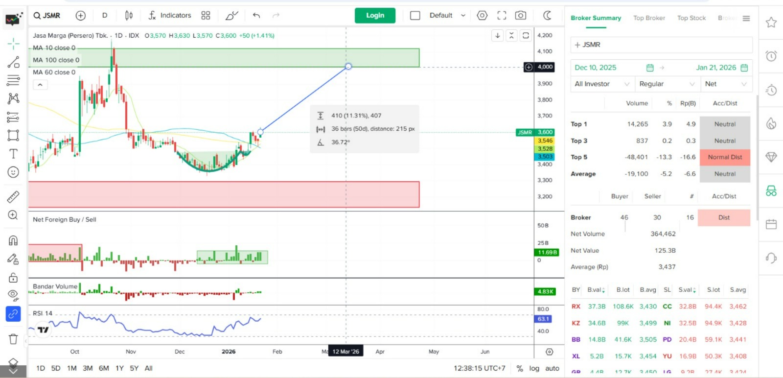 $JSMR membentuk cup and handle ? Target price 4000 di sekitar Maret 2026. Asing juga terlihat mulai akum dari Des 2025. Tag $IHSG $CMNP