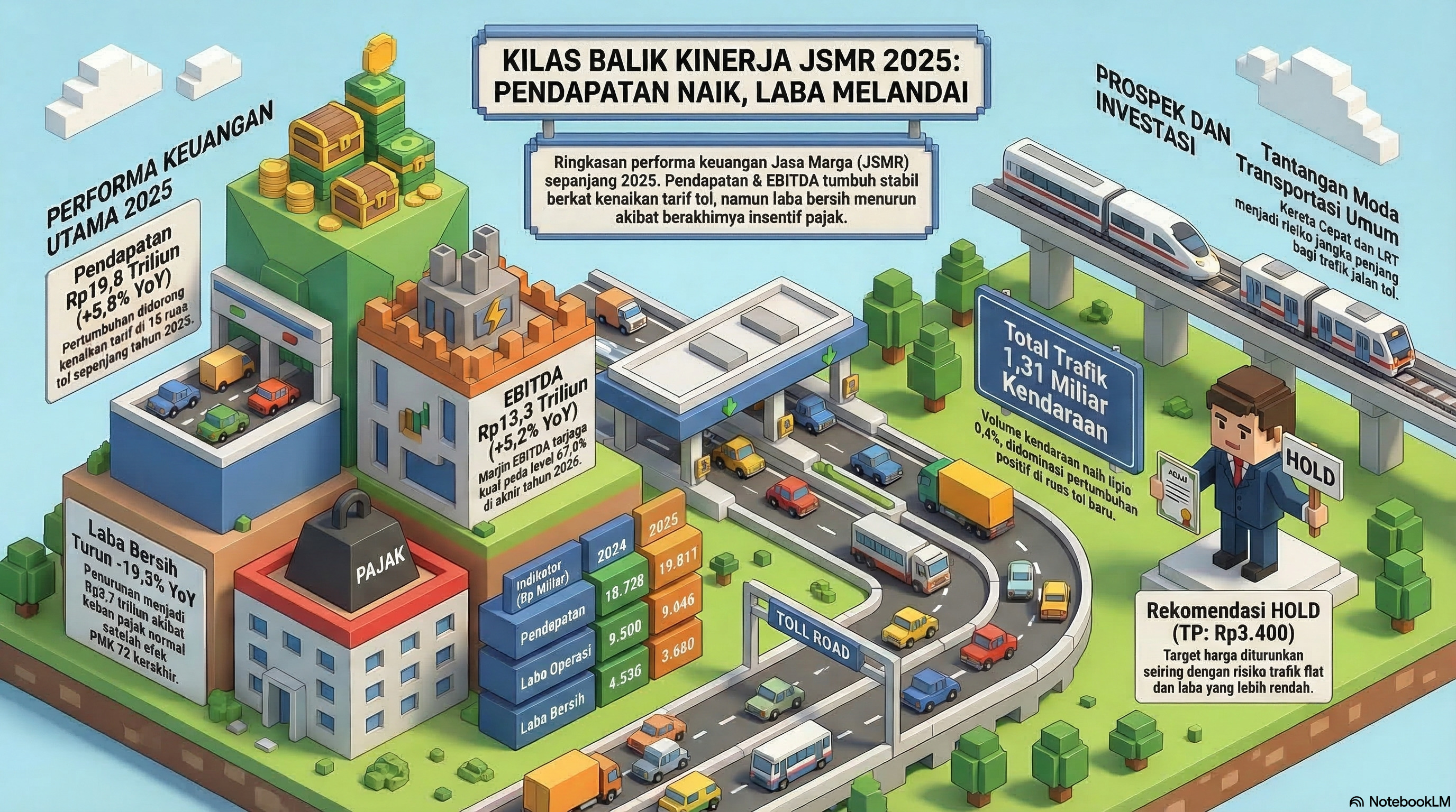 Berdasarkan laporan kinerja keuangan JSMR tahun buku 2025, perseroan mencatatkan penurunan p...
