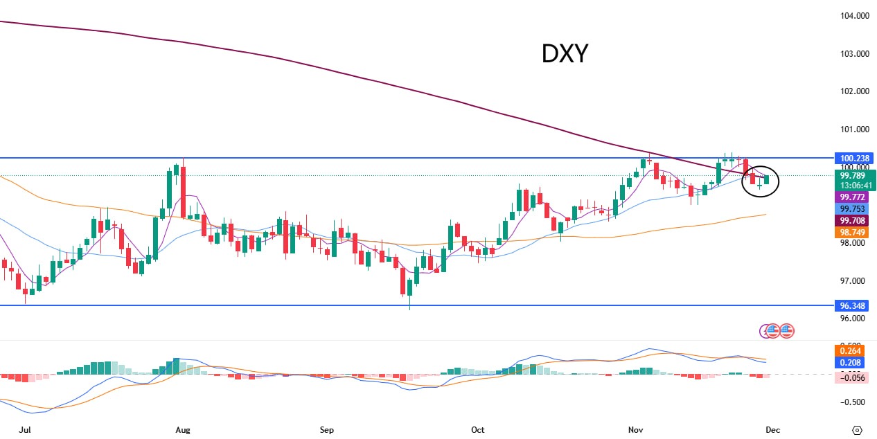 Indeks Dolar (DXY) belakangan ini masih berada di zona lemah, tren utamanya sih masih menurun pelan-pelan. Nah, hari ini (sampai saat ini) ada kenaikan tipis +0,18%, tapi lebih mirip “teknikal rebound” setelah Dolar terus turun beberapa waktu.