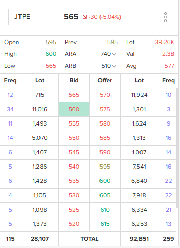Karakter Saham: JTPE dikenal memiliki tren yang stabil namun bisa sangat tajam saat terkoreksi; pastikan untuk tidak terjebak dalam euforia kenaikan sebelumnya.