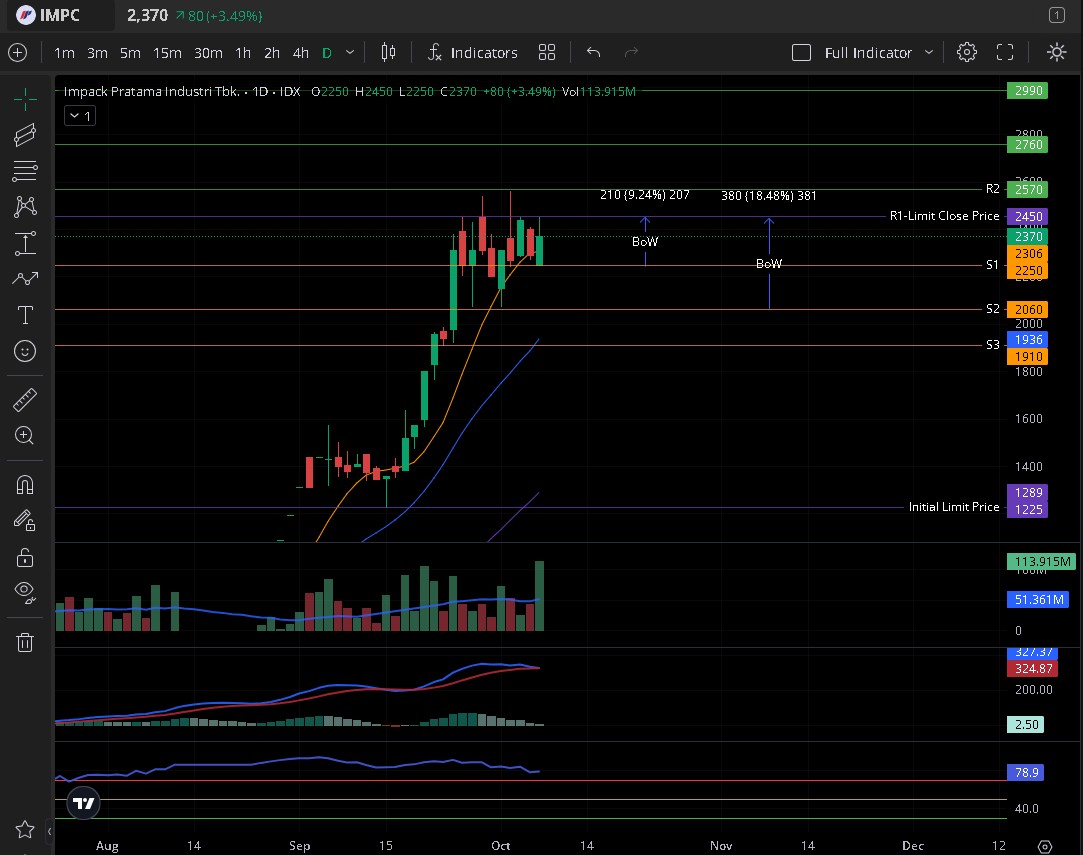 $IMPC terpantau sedang konsolidasi saat ini, sekaligus nampak menjaga pergerakan harganya.