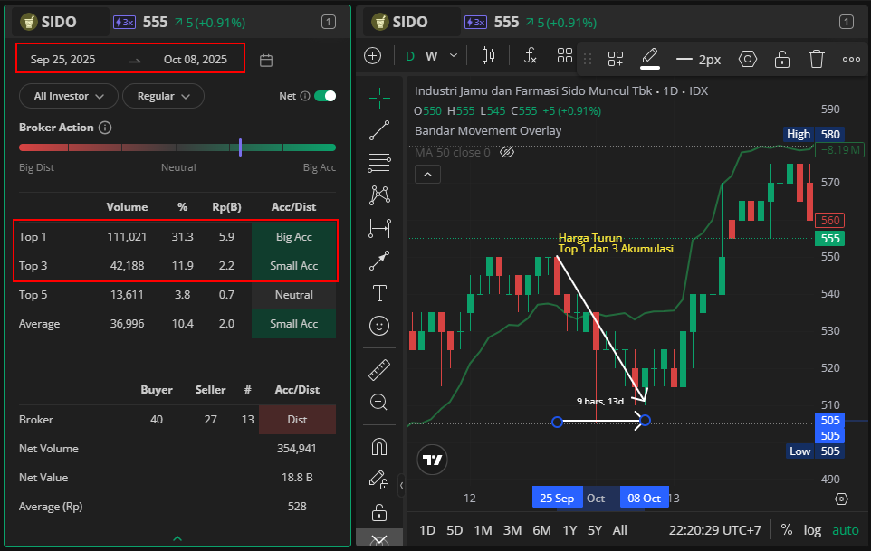 Coba perhatikan periode 25 Sept - 08 Okt di saham SIDO ini.