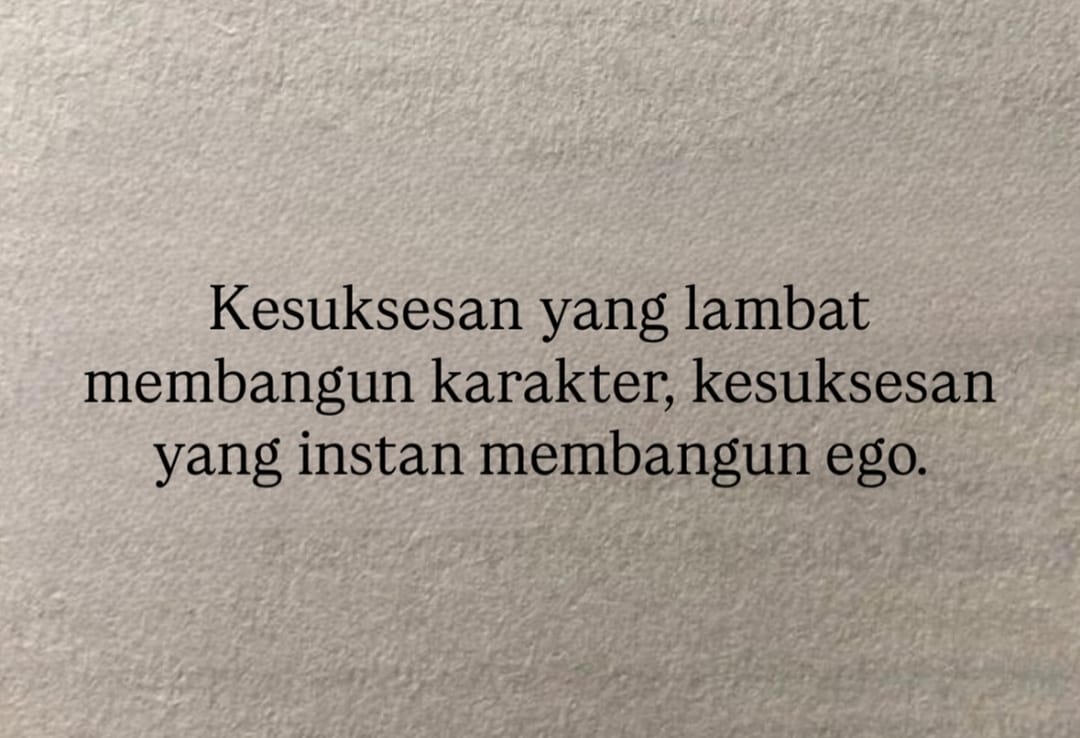 Kesuksesan yang lambat membangun karakter, kesuksesan yang instan membangun ego.