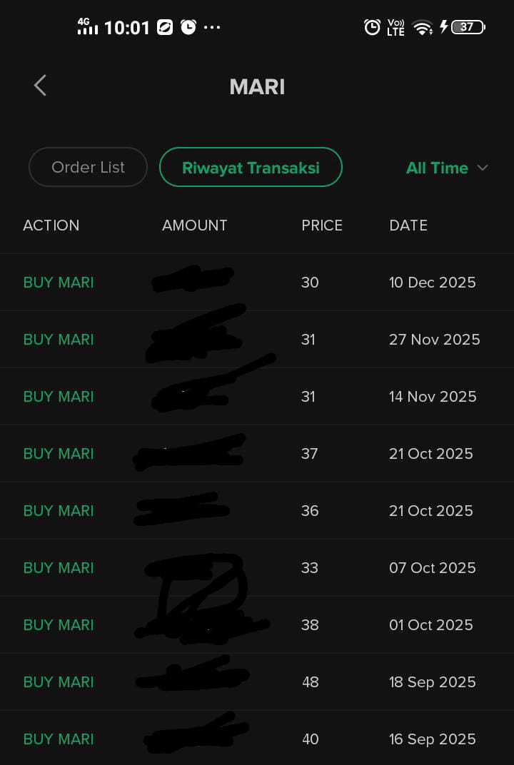 pelan hasil bagger di emiten lain, lempar ke $MARI nasi , last time Des masih bisa akum nabung lot. skrng sepetinya sudh tidak bisa nambah lg,yh sudh tinggal enjoy the ride 🥱.
