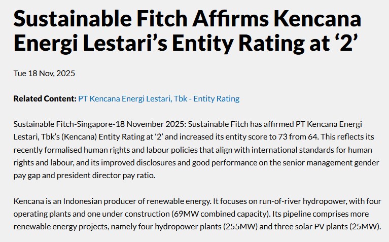 $KEEN Sustainable Fitch Affirms Kencana Energi Lestariβs Entity Rating at β2β