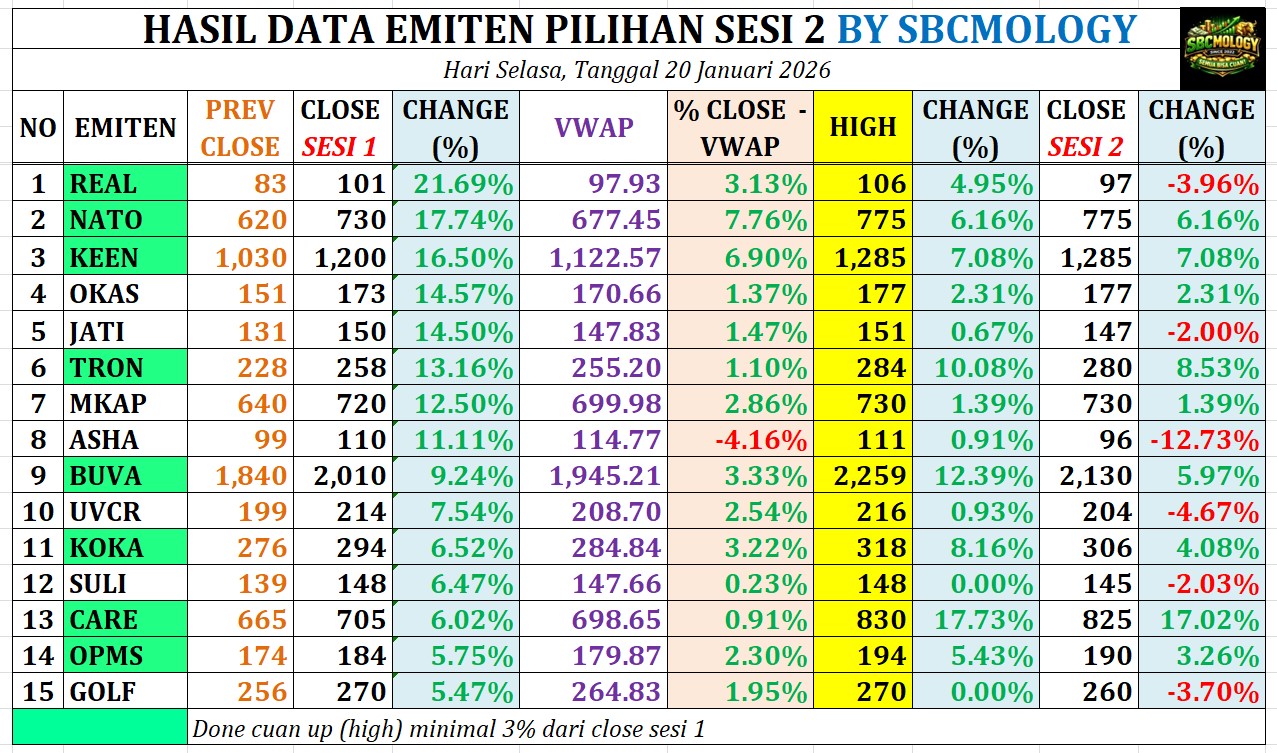 HASIL DATA EMITEN PILIHAN SESI 2 BY SBCMOLOGY