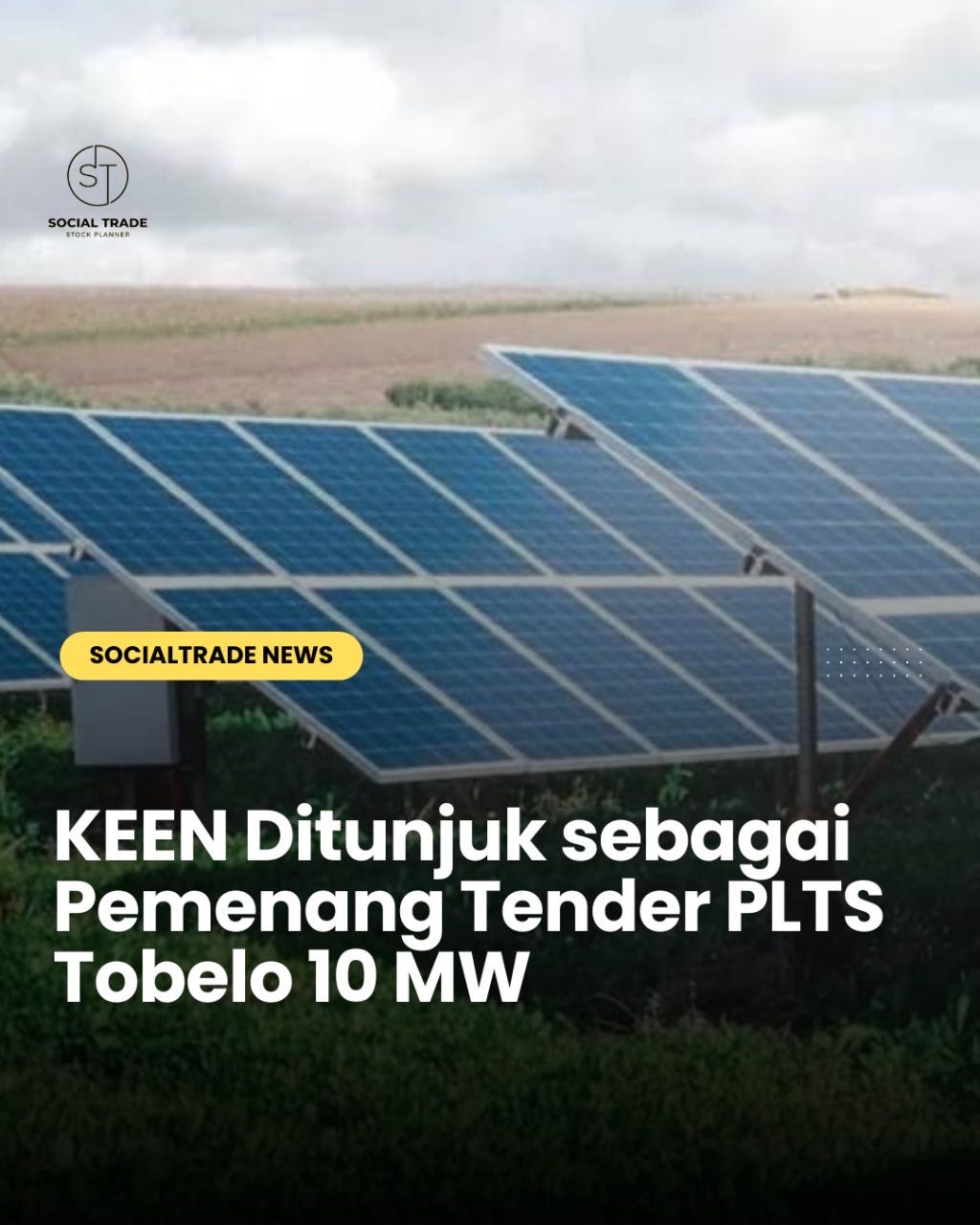 PT Kencana Energi Lestari Tbk ($KEEN) memenangkan tender pengadaan listrik IPP Pembangkit Listrik Tenaga Surya (PLTS) Photovoltaic Tobelo dari PLN.