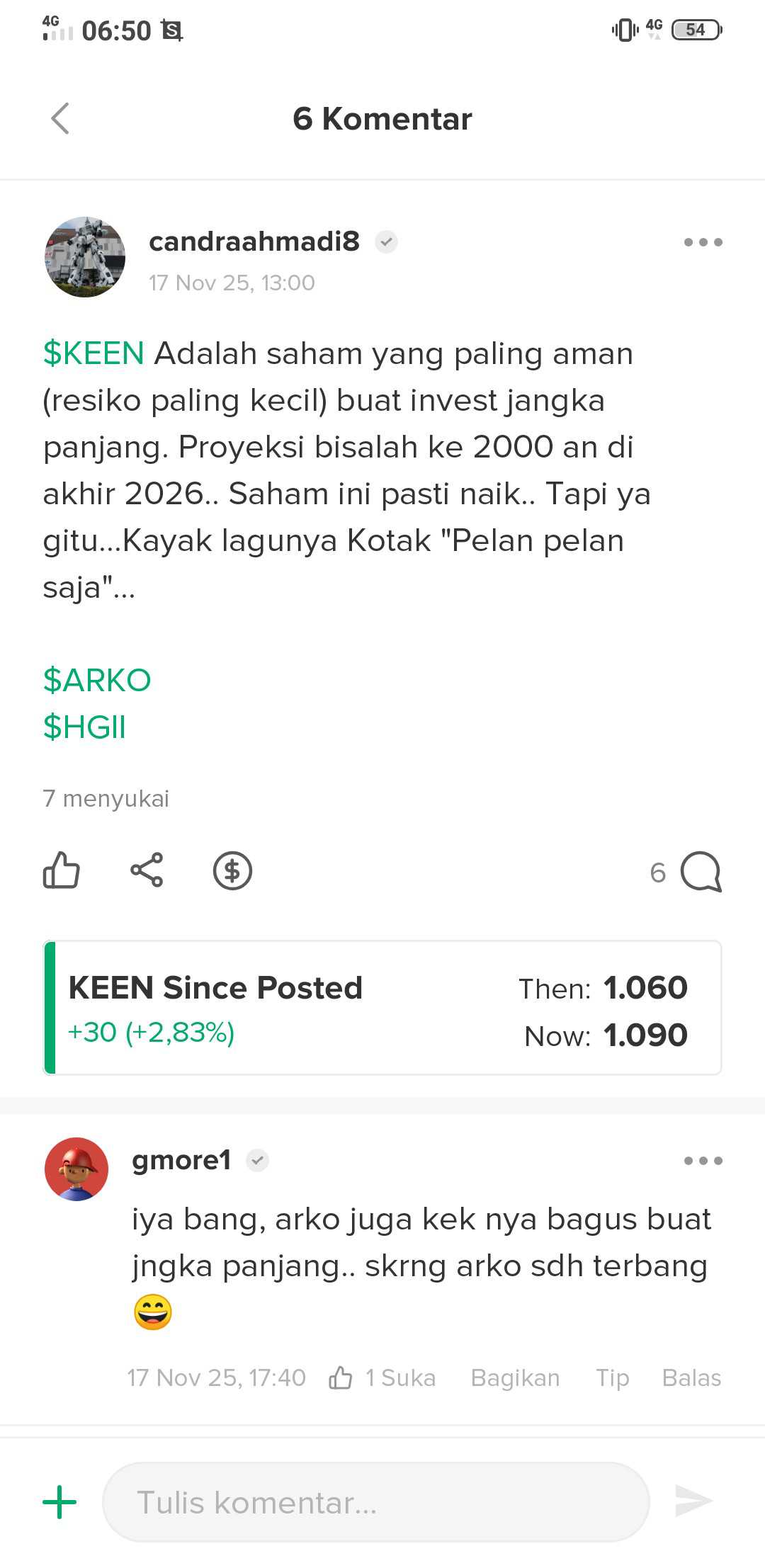 @candraahmadi8 kasihan retail2 yg ada Di $KEEN SALES nya Suka nyinyirin emiten lain., teliti sebelum membeli saham KEEN, SALES nya hama soalnya wkwkwk