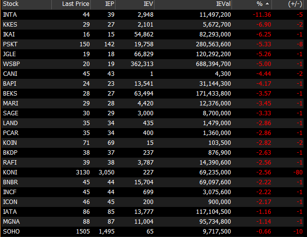 • Tekanan jual masih berlanjut meskipun perlahan mulai mereda.