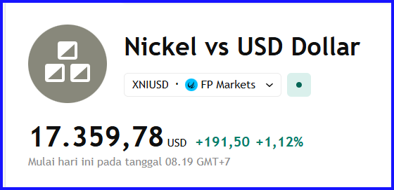 Harga Nickel LME terbang.....berlawanan arah dengan harga saham emiten Nickel yang menyelam...