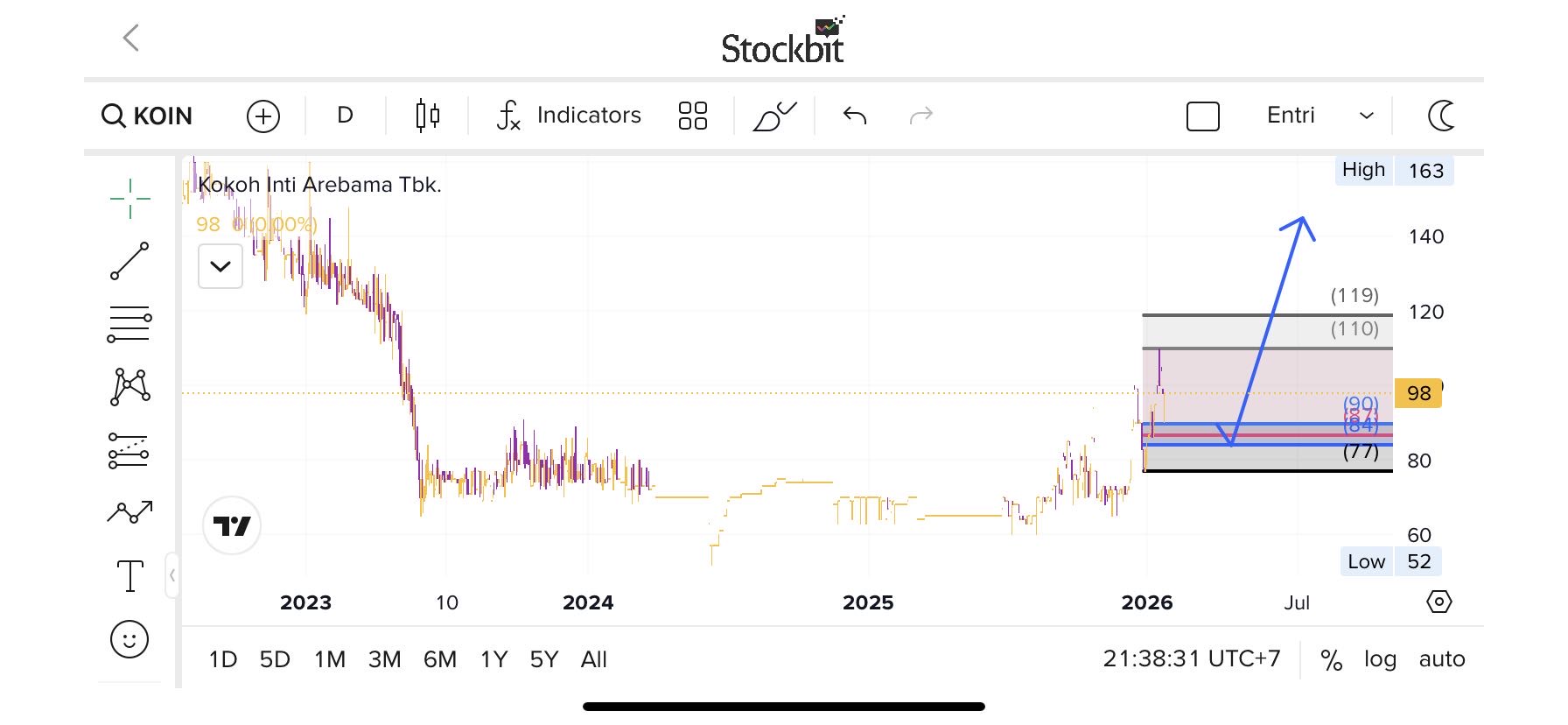 🔼 ARKO gap up ke 5200 (+100 / +1.96%) dari 5100