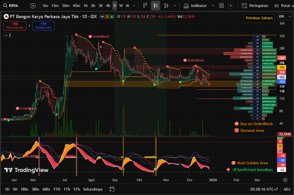 @HanifMahatta $KRYA lagi distribusi, belum ada demand baru. kalau beli sekarang, buat cuan bungkus dulu saja. Demand sebelumya ada di area sekarang di 157-177.