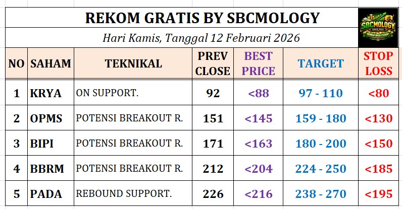 - Catatan : Saham small cap sektor perkebunan dengan volatilitas tinggi. Harga bergerak di area konsolidasi bawah setelah tekanan turun. Struktur belum sehat dan rawan fake rebound, sehingga swing bersifat spekulatif dengan disiplin risk ketat.