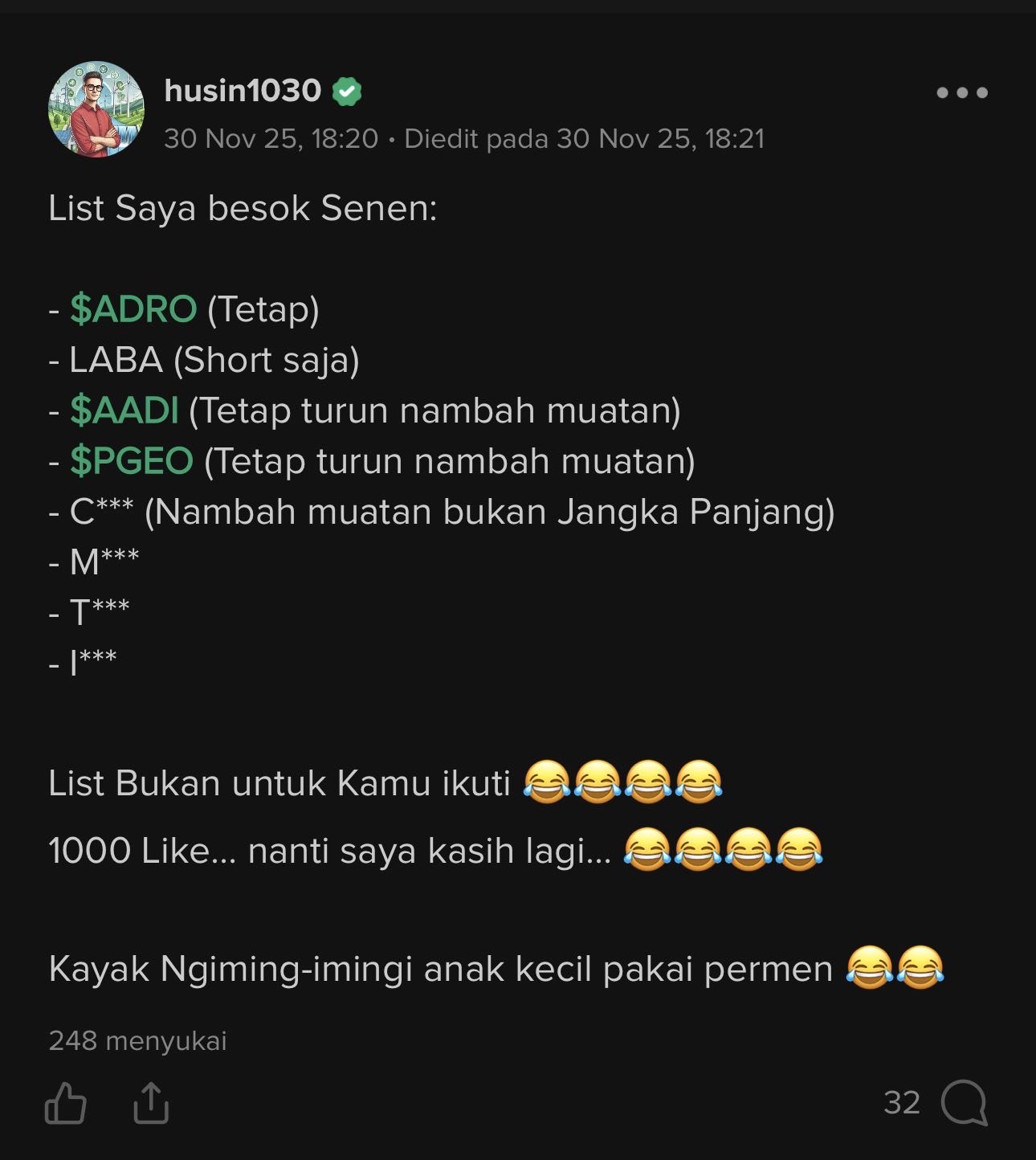 $LABA wah ini om hilman kerjanya gak bener ... suruh tebar fear malah ngumpet