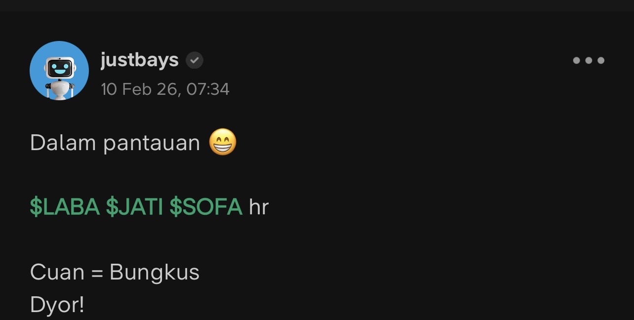 $LABA hola apestor laba-laba.. apakabarnya? semoga sehat2 saja mentalnya ngekip emiten ga jelas ini ๐๐คญ
