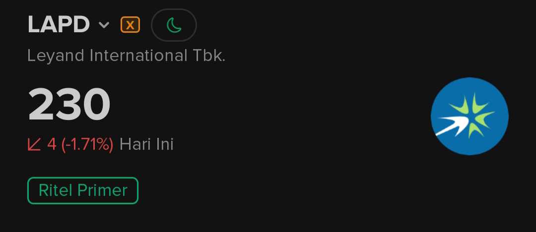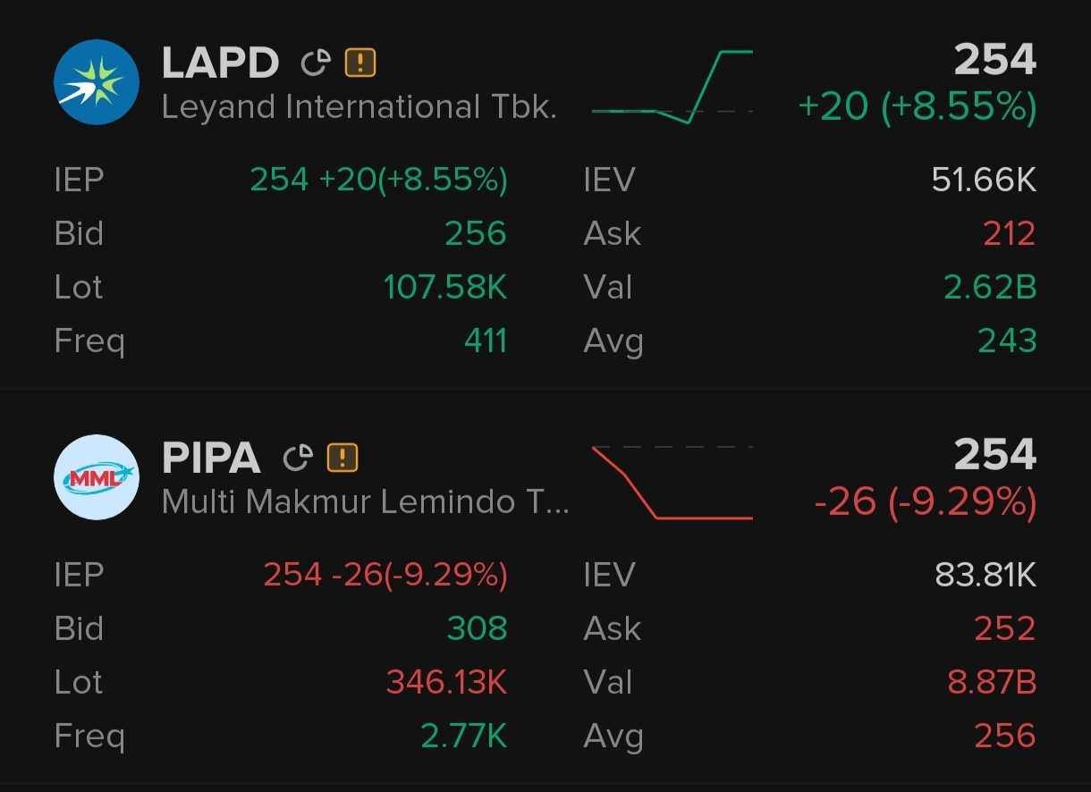 🔽 $LAPD gap down ke 230 (-24 / -9.45%) dari 254