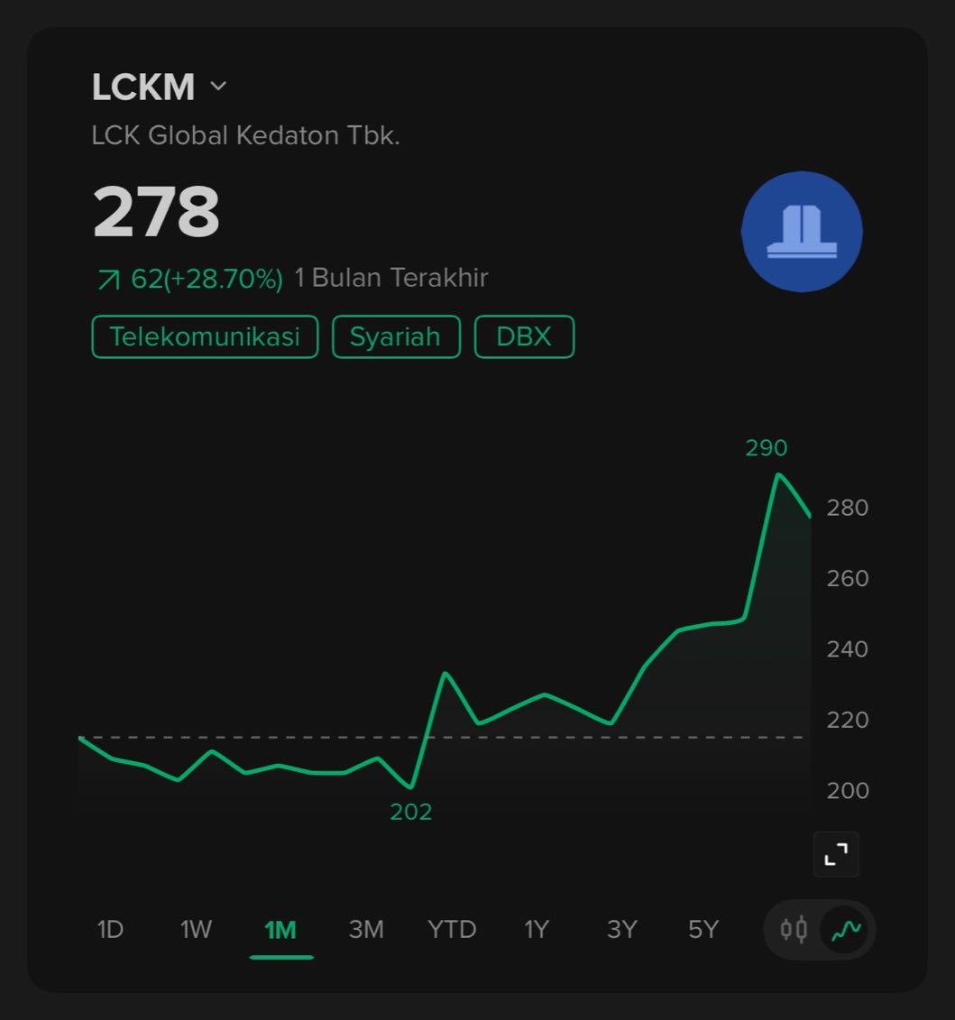 PT. LCK Global Kedaton Tbk (LCKM) bergerak di bidang perdagangan dan konstruksi telekomunikasi, instalasi, pengujian dan commissioning / ITC, layanan dukungan untuk Base Transceiver Station (BTS), dan CME. Perusahaan ini didirikan pada 31 Juli 2013.