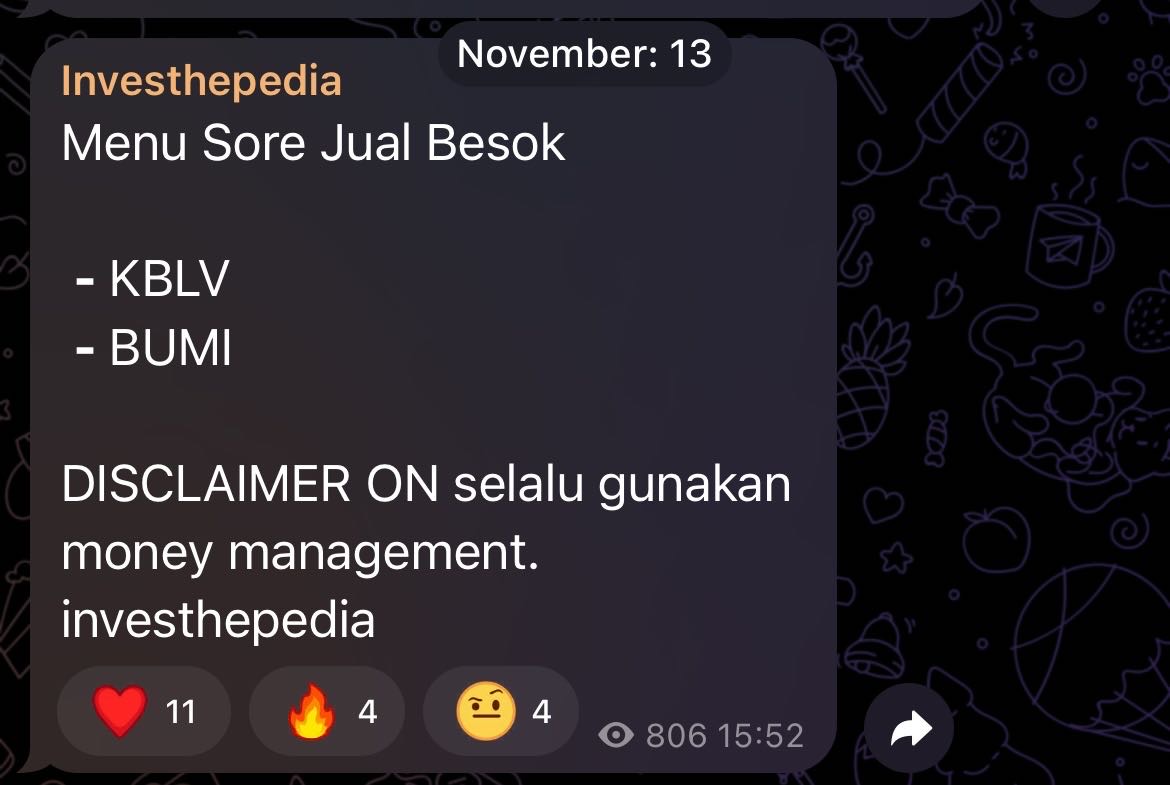 Menu BSJP yang kami share secara free sore kemarin, hari ini memberikan cuan thankyou KBLV dan BUMI