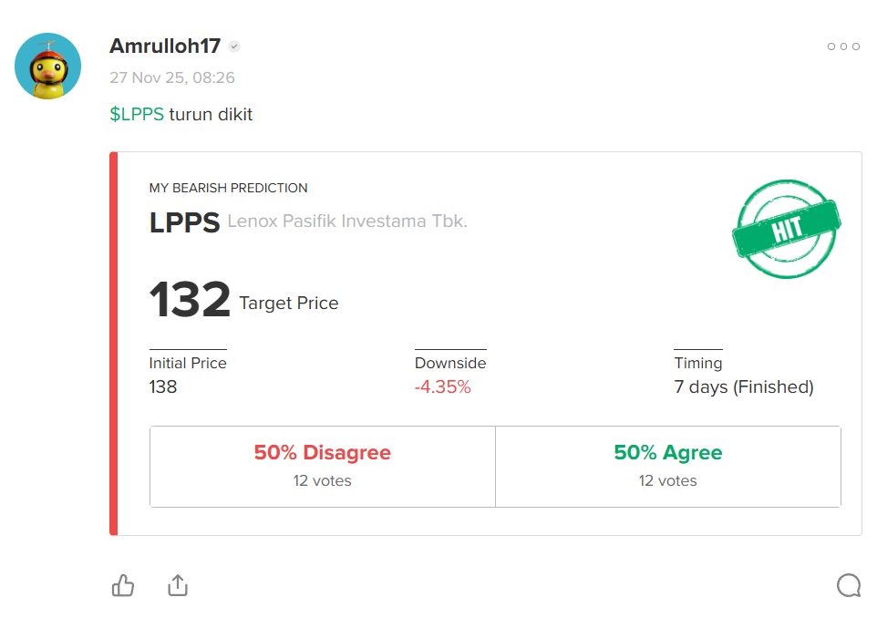 - LPPS masih berada di fase konsolidasi, potensi reversal terbuka selama bertahan di atas 130