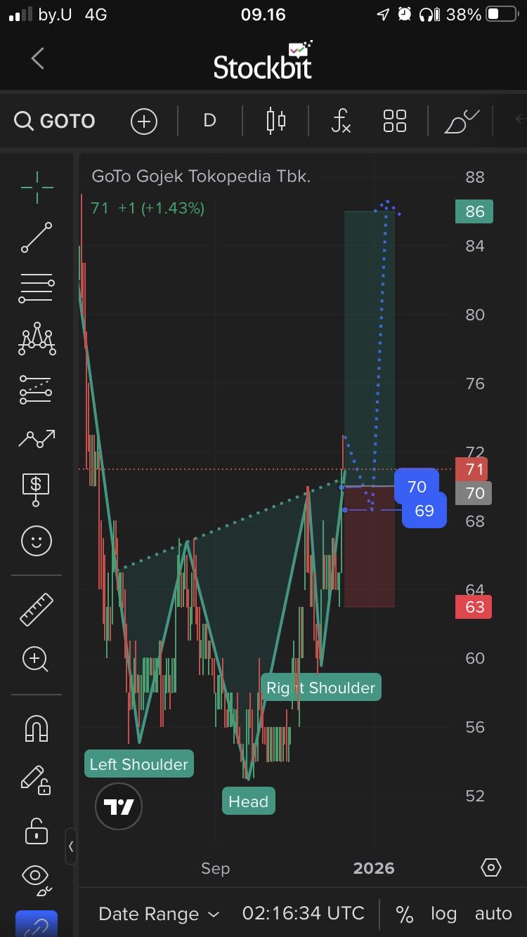 untuk $GOTO saat ini sedang pembentukan pattern IHNS dan sudah valid break jadi tunggu untuk retest terlebih dahulu dan yap 🚀 target TP 86