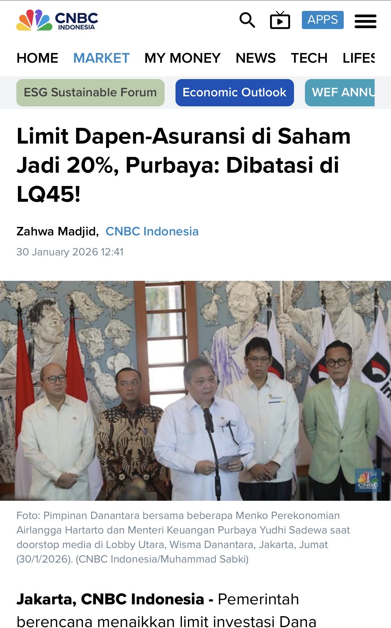 Jakarta, CNBCΒ IndonesiaΒ -Β Pemerintah berencana menaikkan limit investasi Dana Pensiun (Dapen) dan asuransi di pasar modal Indonesia, dari sebelumnya 8% ke angka 20%. Hal tersebut disampaikan olehΒ Menteri Koordinator PerekonomianΒ Airlangga HartartoΒ dalam konferensi pers terkait upaya reformasi ...