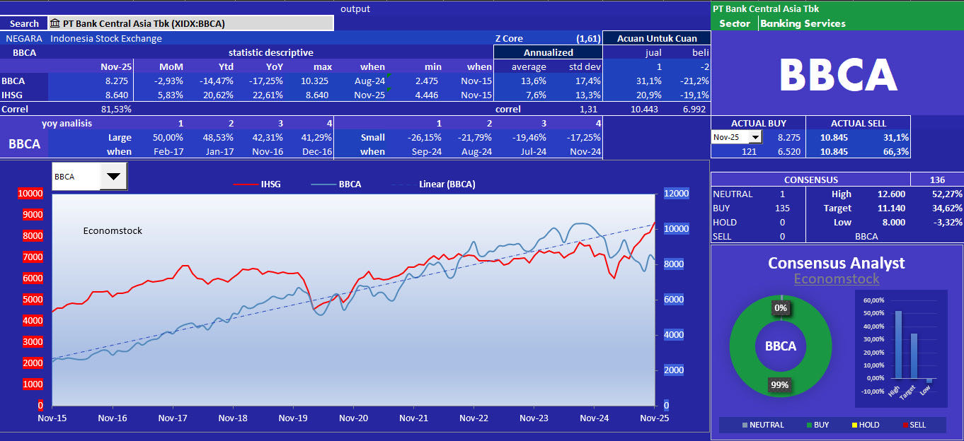 $BBCA nih Dashboard analisa harga 10th terakhir beserta konsensusnya, beberapa saham $LQ45 memang lagi diskon salah satunya BBCA $BBRI.