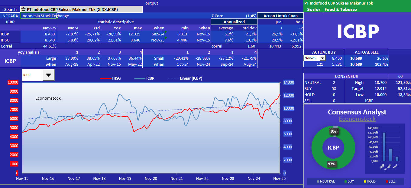 $ICBP nih Dashboard analisa harga 10th terakhir beserta konsensusnya, beberapa saham $LQ45 memang lagi diskon salah satunya $INDF.