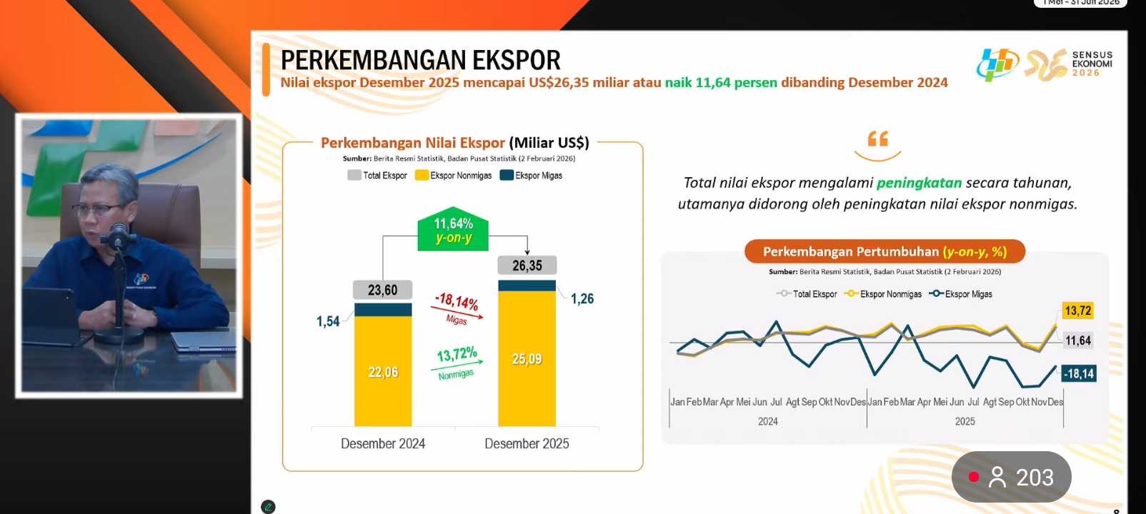 Rilis data neraca perdagangan Indonesia Des 2025 oleh BPS