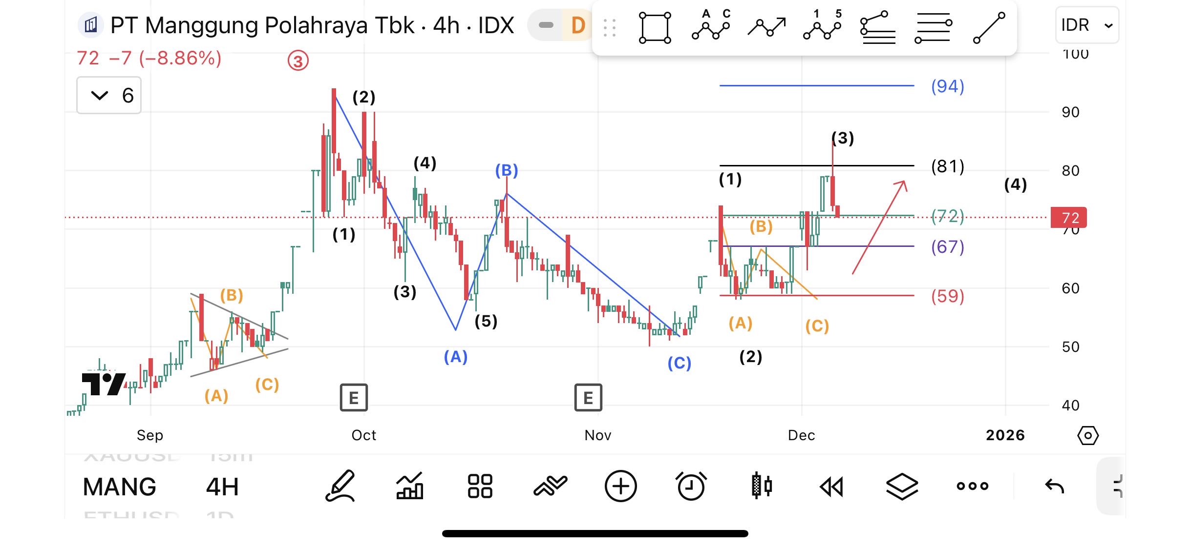 Analisa Sistem: Entry dekat harga sekarang untuk mengejar continuation rally pasca sinyal teknikal “Strong Buy” (indikator harian memperlihatkan 8 sinyal beli vs 0 jual, mayoritas MA dalam posisi BUY) dengan awareness bahwa Stoch/oscillator sudah mendekati overbought dan saham tercatat dalam pengumuman UMA November 2025, meningkatkan risiko koreksi mendadak.