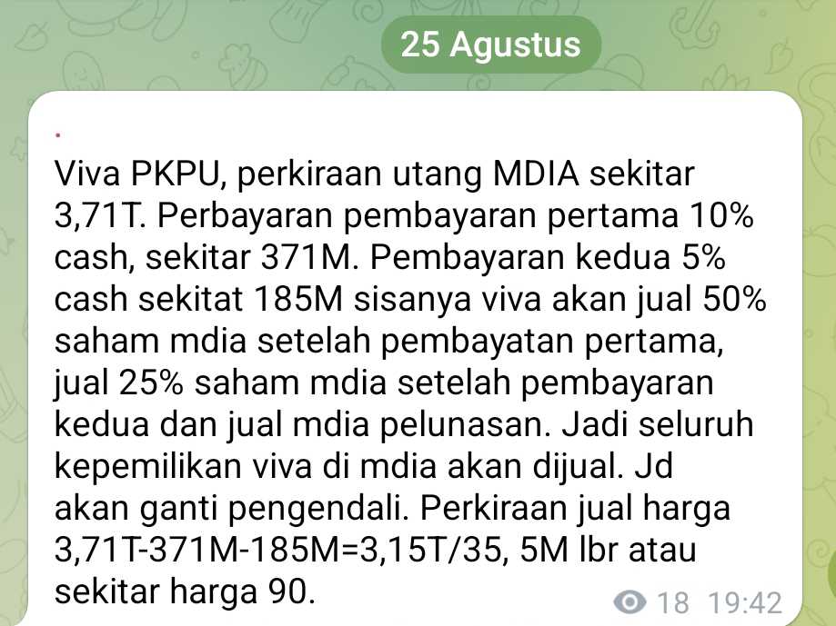 $MDIA $VIVA bnbr elty udah di atas 50 ya