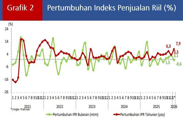 Rilis survei penjualan eceran (retail sales) Indonesia Des-Jan 2026 oleh BI