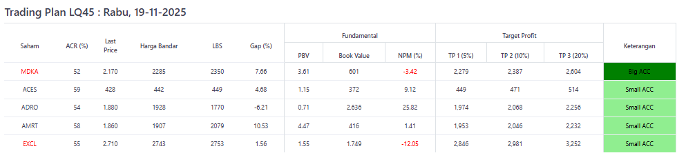 Pertanggal 18 November ini BNI telah melakukan pembelian sebesar 7,9Miliar dengan total 2.100.000 Lembar saham diikut Mandiri yang melakukan pembelian Sebesar 5,3Miliar dengan total 1.420.000 Lembar saham dan Indopremier yang melakukan pembeluab sebesar 6,Miliar dengan total saham 1.750.000 Lembar Saham namun sayangnya Indopremier sendiri sempat melakukan distribusi bertahap sehingga dapat dilihat bahwa Net Buy mereka berada diposisi 3 besar.