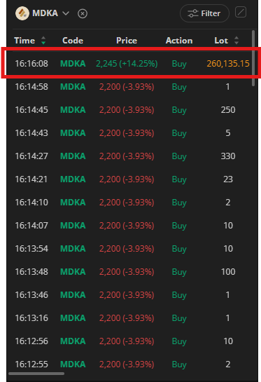 Wah ada apa ini dengan $MDKA ? Beli di harga atas ? Coba kira-kira akan ke manakah arah harganya di hari kemudia ? 😁