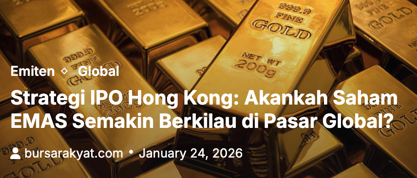 Perusahaan tambang emas Indonesia, PT Merdeka Gold Resources Tbk ($EMAS), dikabarkan telah menunjuk sejumlah bank investasi untuk menggarap rencana pencatatan saham (IPO) di Hong Kong.