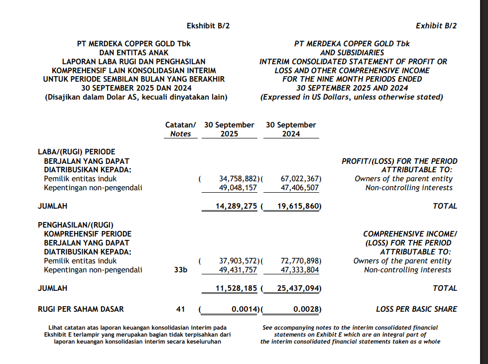$MDKA LK Q3 2025: Laba Entitas Induk vs Laba Tahun Berjalan yang Tidak Sinkron