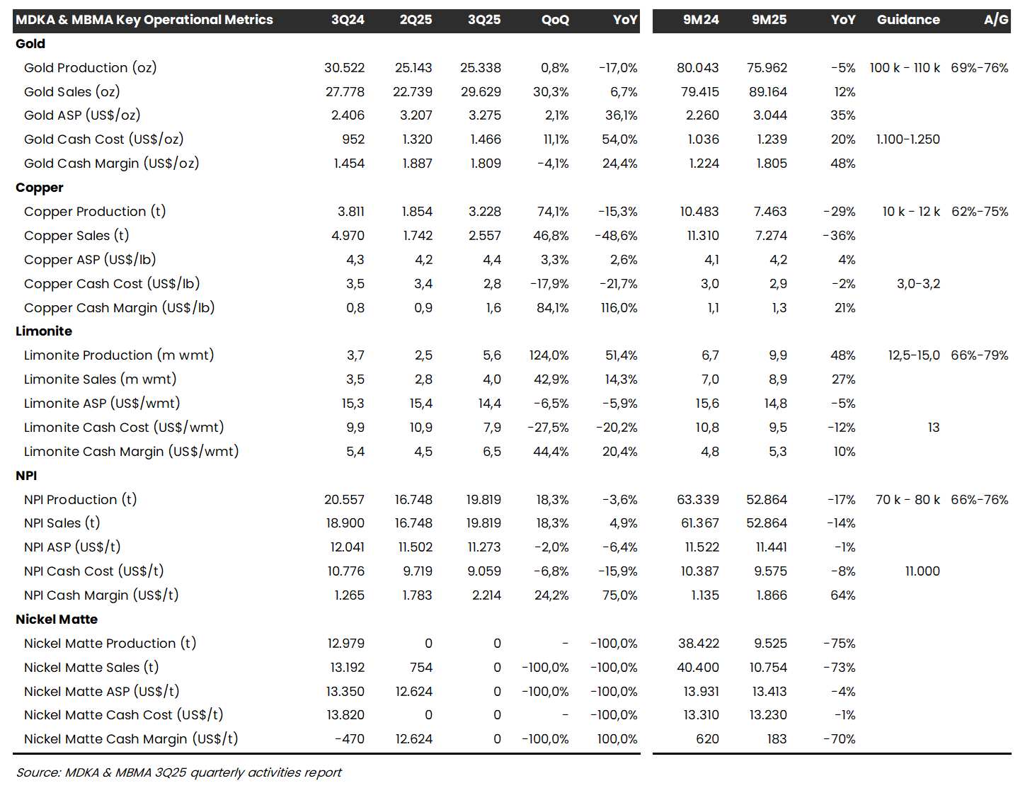 π Kinerja Operasional MDKA & MBMA pada 9M25