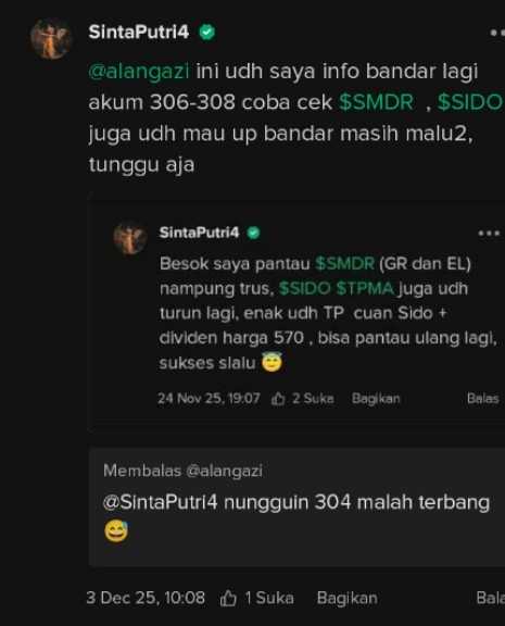 @Gunawan1985 ini barengan ma $SMDR $SIDO , saham bagus klo turun beli aja, $MDKA juga saya info, baca aja post saya di MDKA apalagi akhir tahun 😉, udh TP juga SMDR beberapa x cuan 🤑, sukses slalu 😇