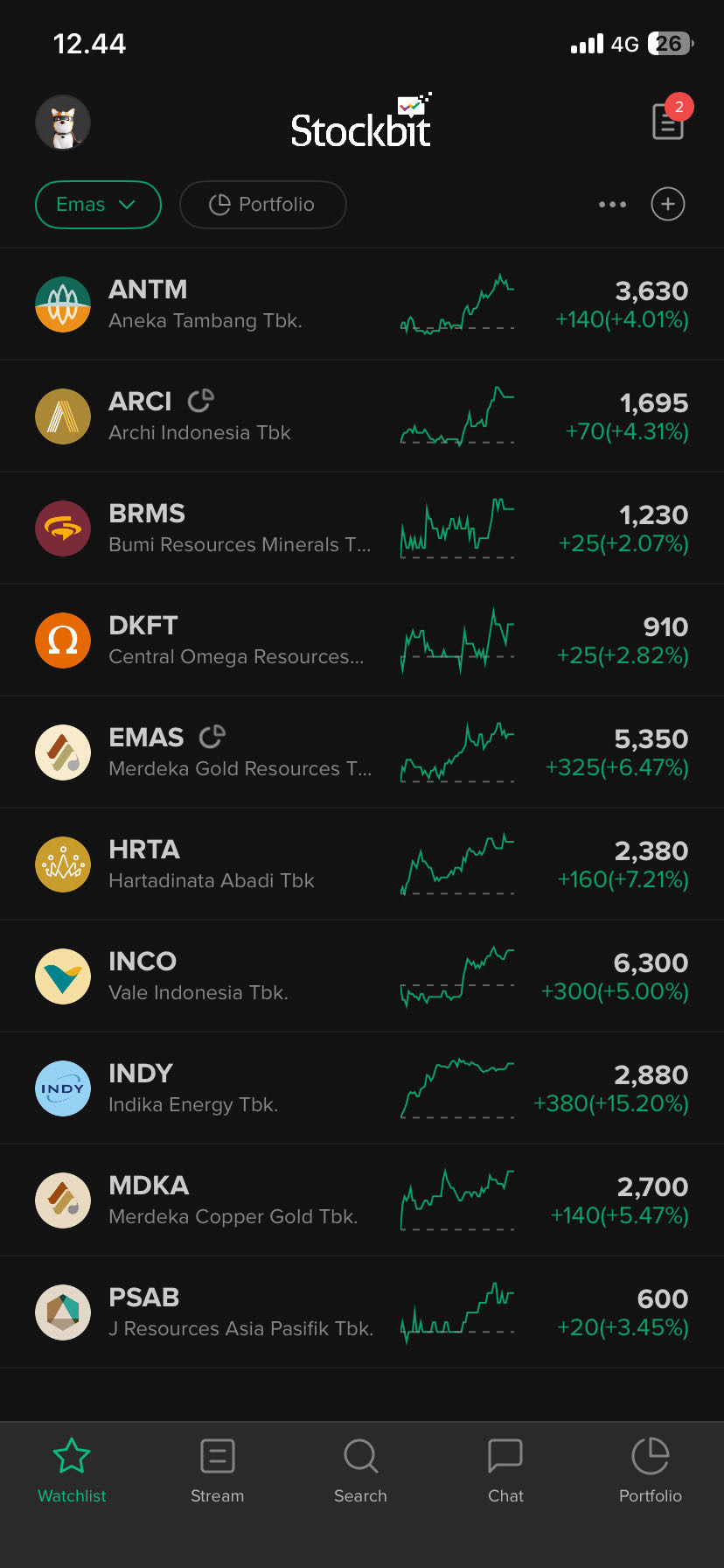 - Emiten tambang emas & tembaga, sensitif terhadap harga komoditas global.