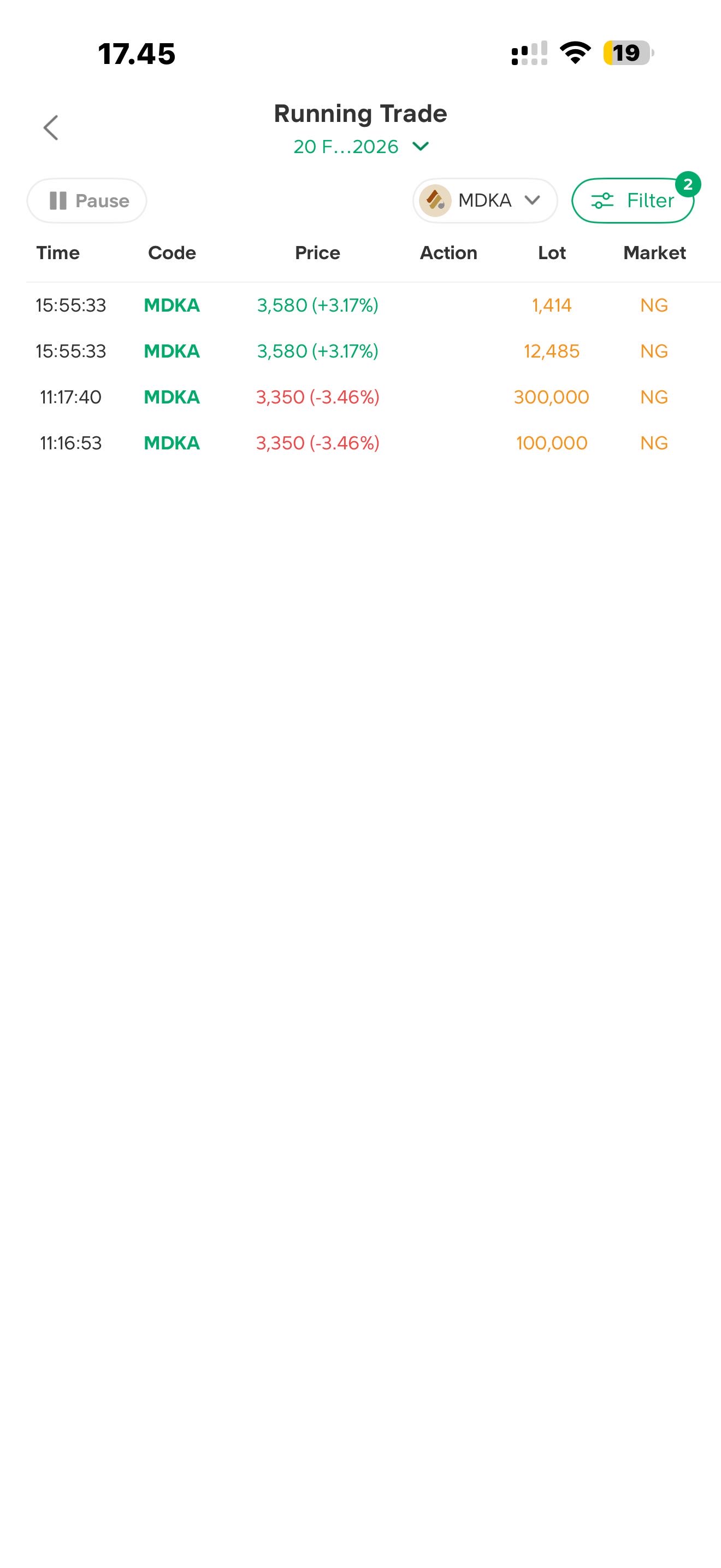 Alasan saya MDKA akan naik adalah volume besar dan masih dijaga. Sekarang sudah mencapai TP2 lebih. Kenaikan nya adalah 23% dalam 2 minggu. Swing yang ga sia sia tentunya..apakah harganya masih akan naik?