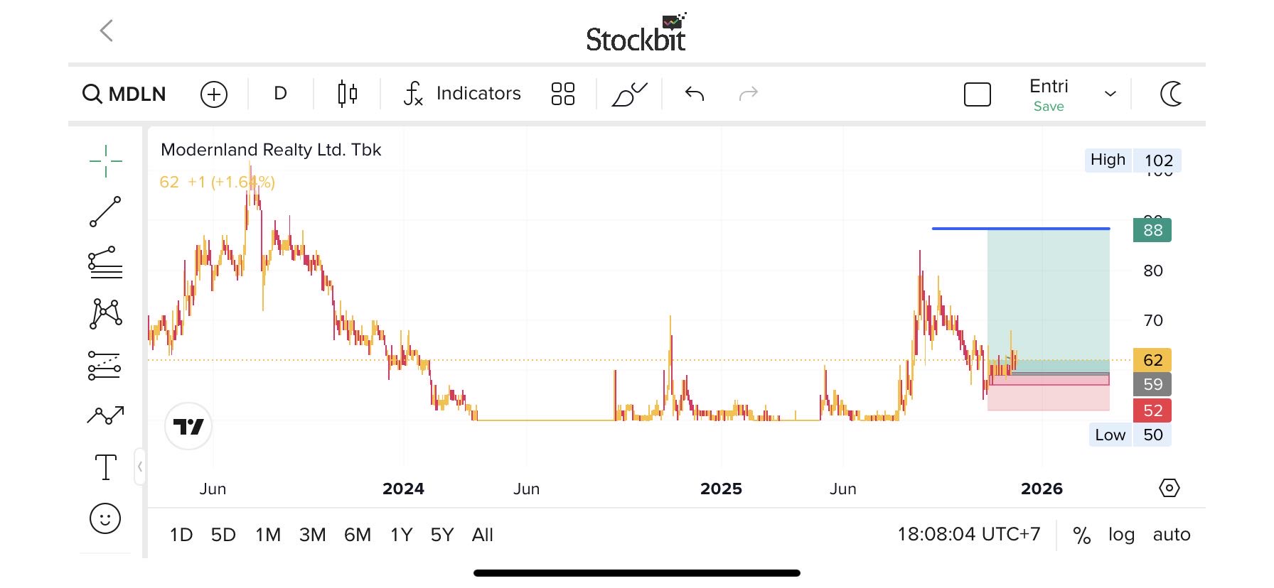 $MDLN Lumayan juga ya... masuk 60, jual 64-66, masuk lagi 60...Begitu aja terus sampai tajir melimpir