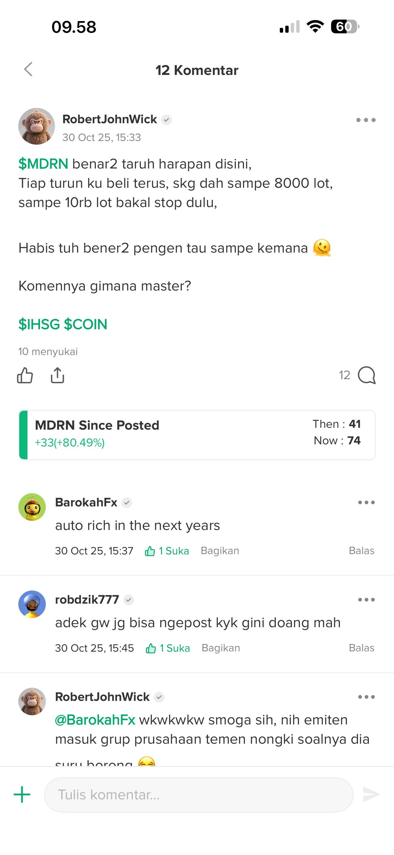 Tapi kalo waktu itu ada yang nampung $MDRN pas ini diposting(harga 41), selamat, Senin udah 100%😁🫰🏻