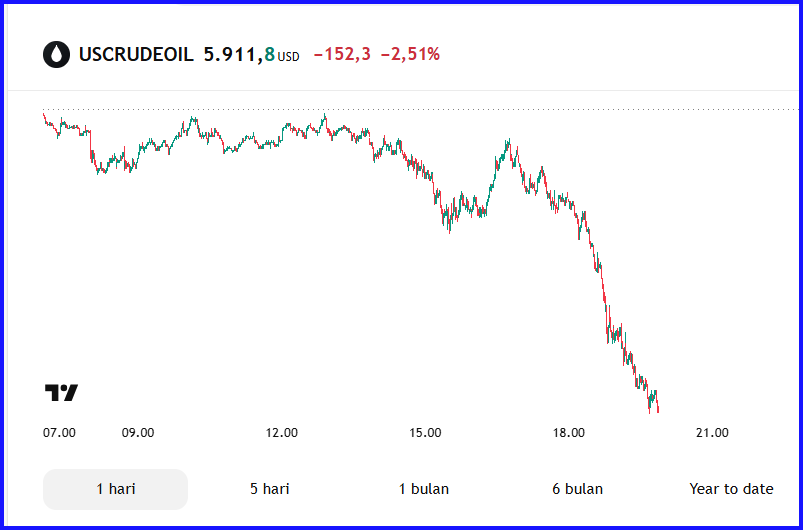 Belum sempat TP harga Minyak mentah dunia sudah terjun bebas lagi malam ini (−2,35% )