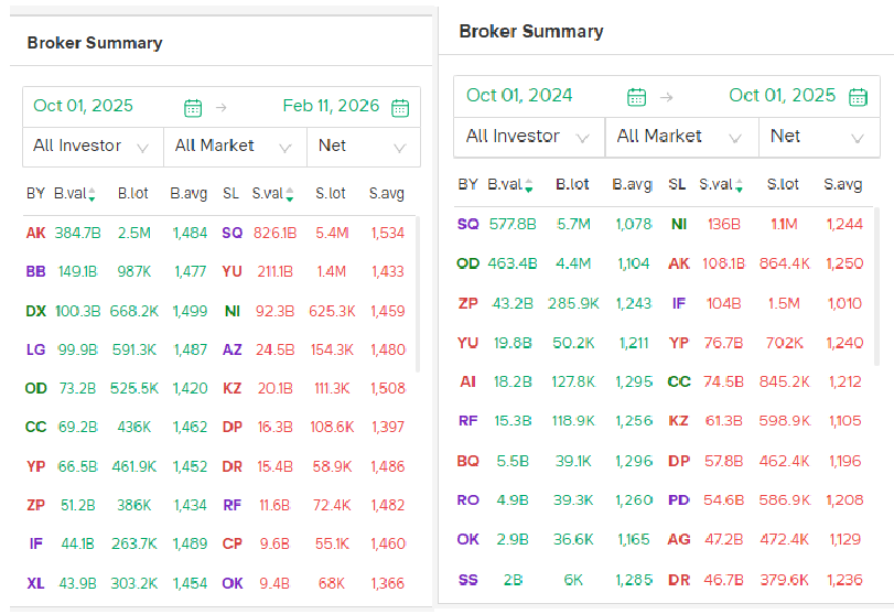 * *BYAN* : Direktur *PT Bayan Resources (BYAN)* , Oliver Khaw Kar Heng, menjual 311 ribu saham BYAN dengan harga rata-rata Rp14.255/saham, sehingga total transaksi mencapai ~Rp4 miliar. Transaksi dilakukan 6 Februari 2026. (Publikasi emiten)
