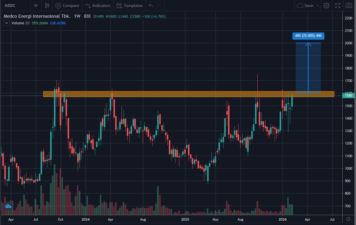* *MEDC* : Direktur Utama *PT Medco Energi Internasional (MEDC)* , Hilmi Panigoro, mengatakan MEDC menyiapkan ekspansi agresif di Asia Tenggara dan Timur Tengah untuk mengejar target produksi 170.000 BOEPD pada 2026, level tertinggi dalam sejarah perusahaan. Percepatan pengembangan blok Sakakemang ditargetkan memungkinkan pengiriman gas pertama pada akhir 2027. (Reuters)