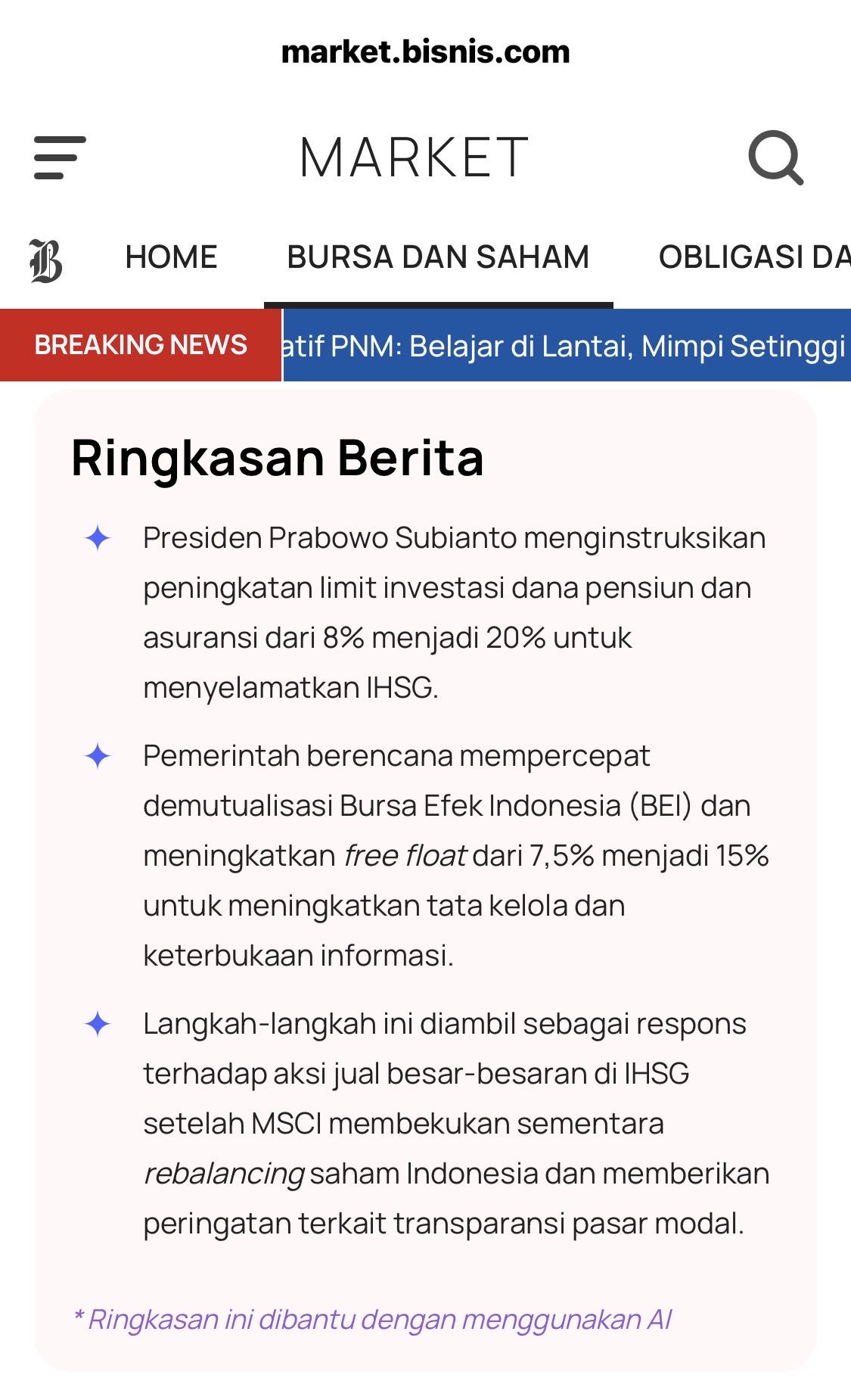 Freefloat 15% š Ini baru bisa terwujud kalo ada likuiditasnya.
