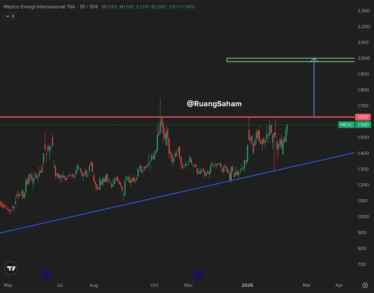 bisa masukkan watchlist kalian dulu ya, MEDC ini berpotensi untuk bisa naik ke area 1990-2000 dengan syarat MEDC harus bisa break 1630 terlebih dahulu ! good luck ! #BukanRekomendasi #AnalisaKembali #NoPomPom #DisclaimerOn #NFA #DYOR #BukanRekomendasi