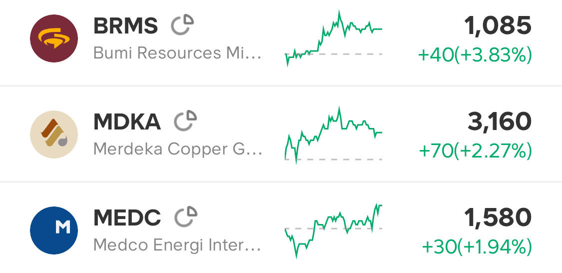 Beberapa saham seperti $BUMI, BRMS, $DEWA, $MEDC, ENRG, BBTN, dan INET masih menjadi perhatian setelah pergerakan di awal pekan.