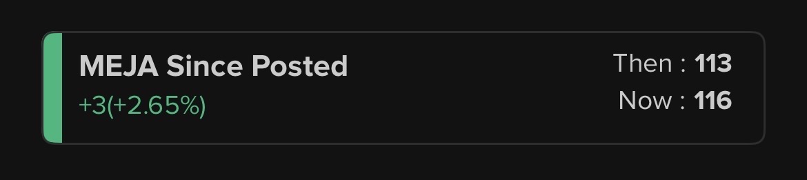 Untuk jangka pendek, arah MEJA cenderung sidewaysβlemah. Selama harga mampu bertahan di atas 115β117, ada peluang technical rebound menuju 122β125. Namun jika break di bawah 115, potensi turun ke area 105β100 terbuka. Sinyal aman baru muncul jika harga mampu kembali close di atas MA50 (Β±122) dengan volume meningkat sebelum itu, saham ini masih lebih cocok untuk wait and see daripada agresif entry.
