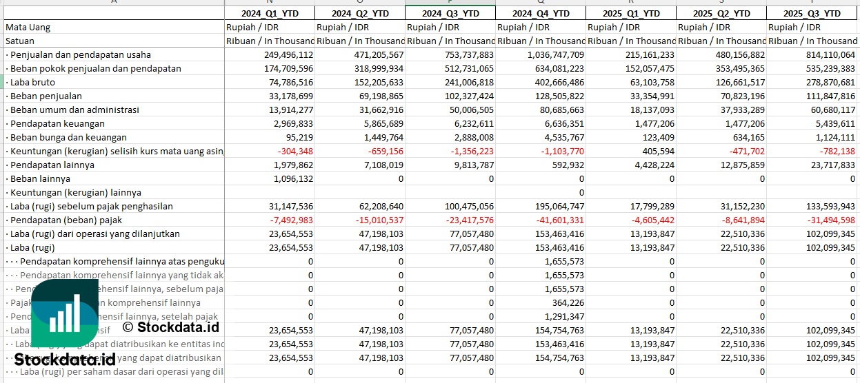 Namun drama itu berbalik tajam di Q3 2025. Secara year to date 9M, pendapatan naik menjadi sekitar 814,1 miliar dari 753,7 miliar di 9M 2024, tumbuh 8,01%. Laba year to date melonjak lebih kencang, dari 77,1 miliar menjadi 102,1 miliar, naik 32,50%. Dengan sedikit aljabar sederhana, ini berarti laba kuartal ketiga saja sekitar 79,6 miliar, naik lebih dari 755% quarter on quarter dari titik terendah 9,3 miliar di Q2 2025. Pendapatan Q3 2025 juga kuat, sekitar 334,0 miliar. Margin laba year to date membaik dari 10,22% di 9M 2024 menjadi 12,54% di 9M 2025. Q3 2025 praktis menjadi kuartal balas dendam setelah dua kuartal sebelumnya menekan mental pemegang saham.